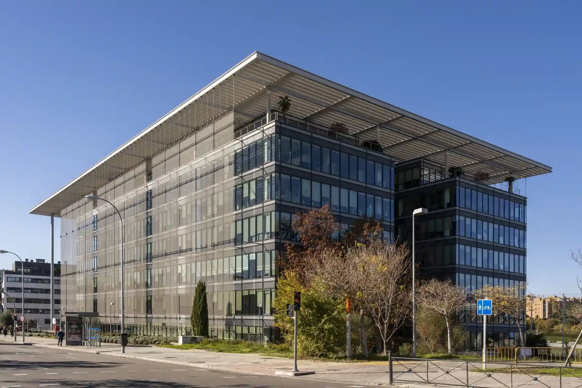 Proyecto del Edificio Portico de Rafael de la Hoz, con múltiples perfiles de acero y diversidad de estructuras de hormigón armado.
